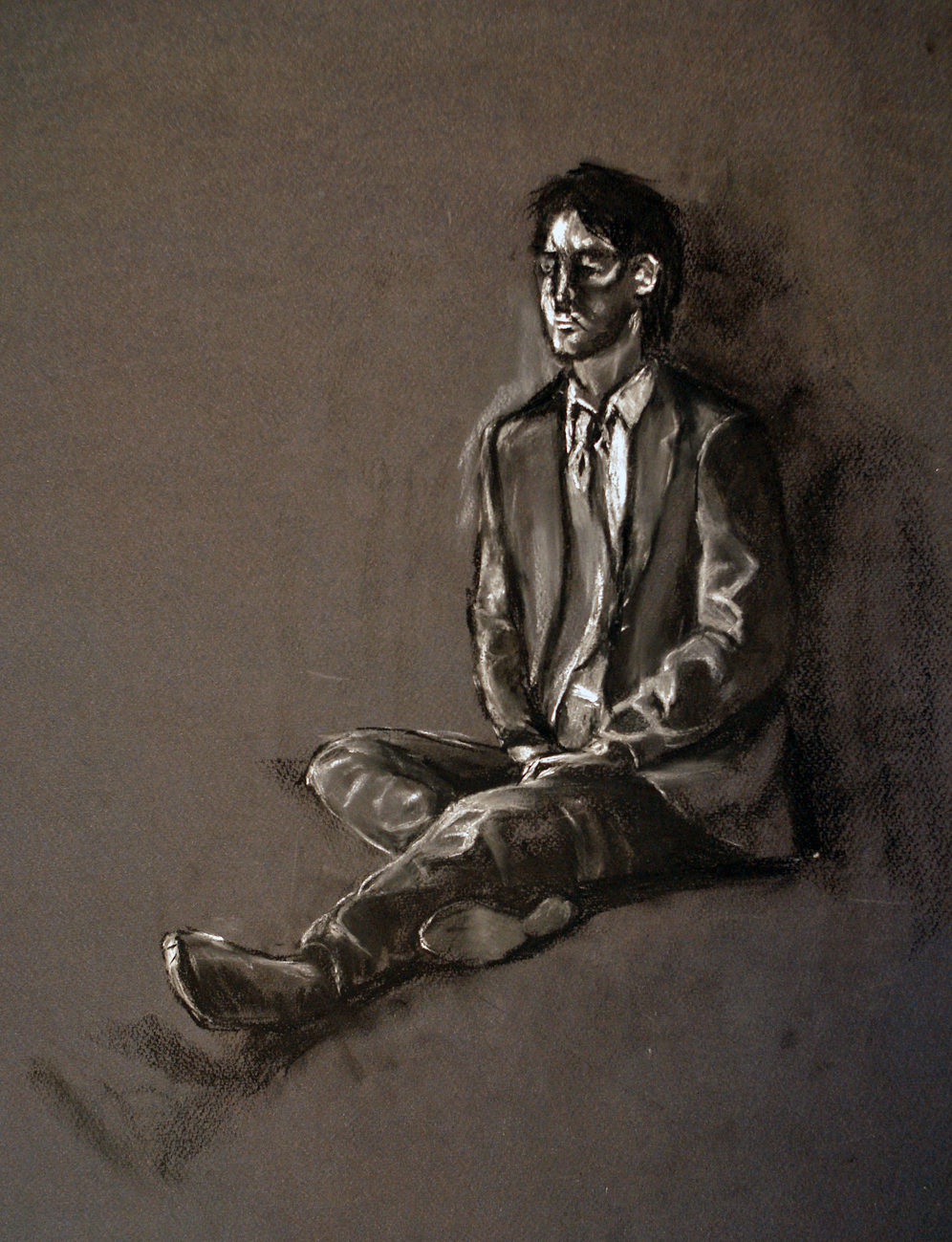 Clothed figure with black conte.
